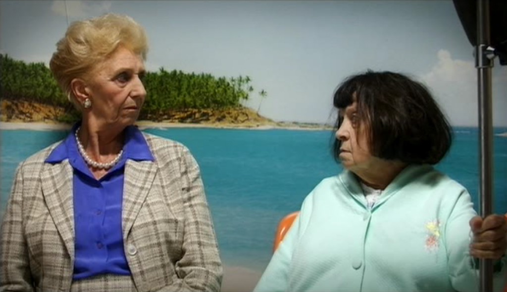 Armées de téléphones portables, deux femmes d’âge respectable se livrent à un test de connaissance impitoyable dans la salle d’attente d’une clinique. Pour ne pas perdre la face, jusqu’où iront-elles ?