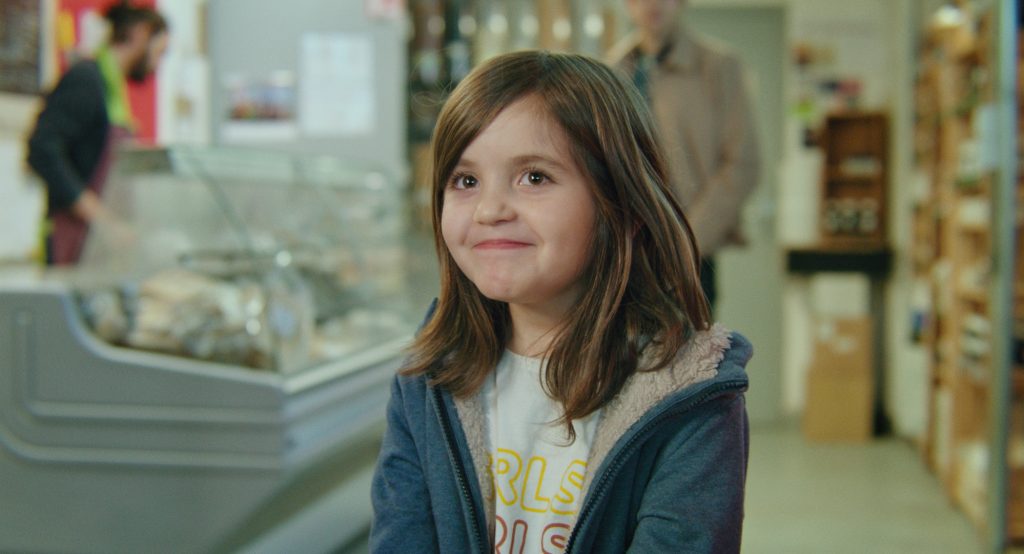 Juliette Allain a le sens de l’humour. Dans son film Tu demanderas à ta mère, l’injonction du titre découle du trouble que fait naître une gamine de six ans – presque sept – chez son père, quand elle le confronte à ses questionnements sur le corps et sur la féminité, en plein magasin bio et face à un ami du géniteur.