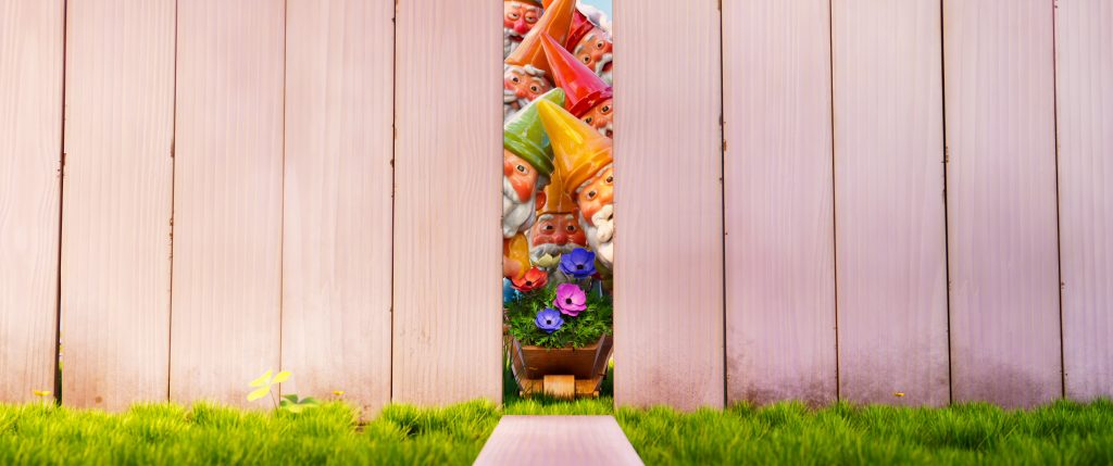 Pendant que des golfeurs jouent de l’autre côté de la haie, des nains de jardin à la vie paisible se retrouvent attaqués par des balles de golf perdues.